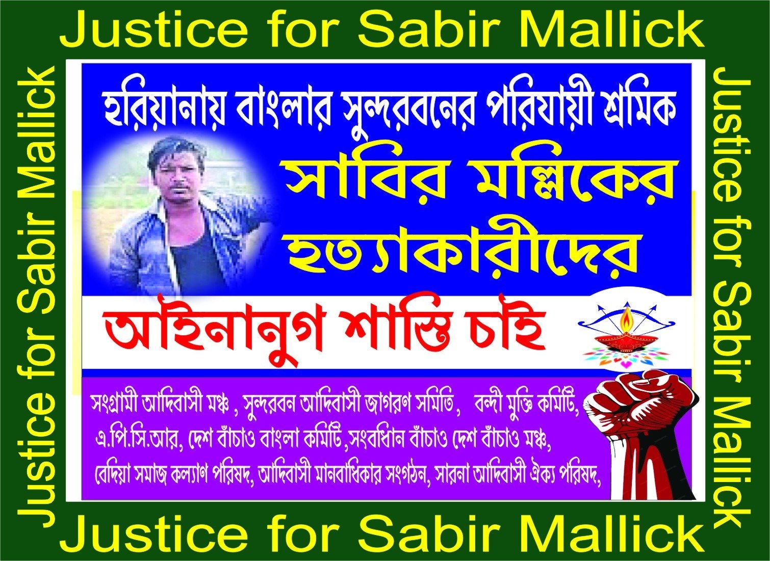 ২৭ আগষ্ট ২০২৪। আর জি করের আন্দোলনের গনগনে আঁচের মাঝে খবর এল দক্ষিণ ২৪ পরগনার বাসন্তীর যুবক সাবির মল্লিকে প্রকাশ্যে পিটিয়ে খুন করেছে হরিয়ানার গোরক্ষক বাহিনী। গোমাংস রান্না করে খেয়েছে এই সন্দেহে সাবিরকে বাড়ি থেকে তুলে এনে পিটিয়ে হত্যা করেছে। তার দেহ ময়না তদন্তের পর পশ্চিমবঙ্গ পরিযায়ী কল্যাণ পর্ষদের সাহায্যে সাবিরের নিথর দেহ বাসন্তীর বাড়িতে আনা হয়। হত দরিদ্র এই যুবকের দেহ তাঁর গ্রামের বাড়িতে কবর দেওয়া হয়।