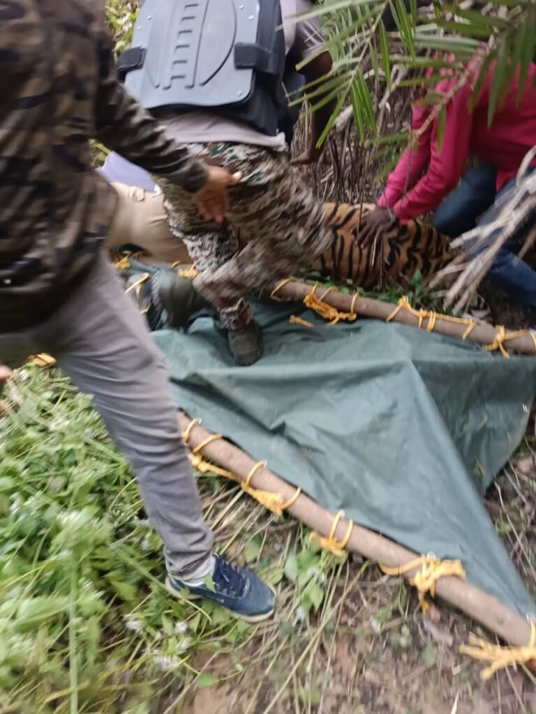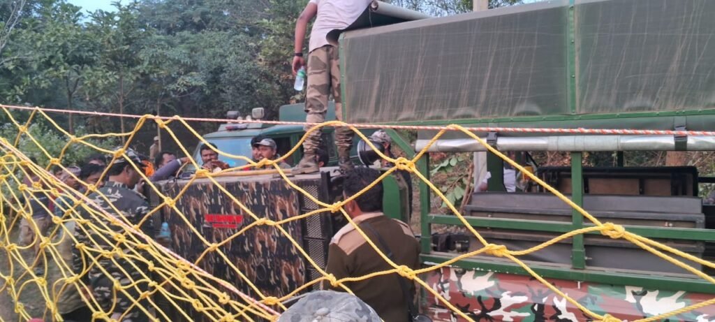কিছুটা সময় অপেক্ষা করার পর বনকর্মীরা নিশ্চিত হয়ে তাকে দড়ি দিয়ে বেঁধে কাঁধে করে গাড়িতে তোলা হয়।