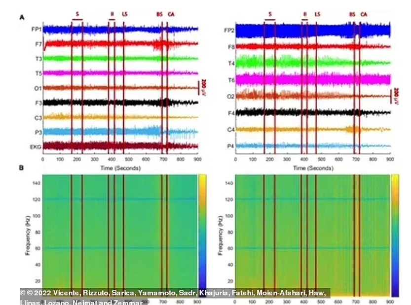 এই গবেষণায় বিজ্ঞানীরা ৮৭ বছর বয়সী এক মৃগীরোগী চিকিৎসাধীন থাকা অবস্থায় হৃদ্রোগে আক্রান্ত হয়ে মারা যান। তাঁর মৃত্যুর ঠিক আগের মুহূর্তে অর্থাৎ হৃদ্যন্ত্রের স্পন্দন বন্ধ হওয়ার আগে ও পরের ৩০ সেকেন্ডের মস্তিষ্কের কার্যক্রম পর্যালোচনার জন্য চিকিৎসকেরা তাঁর মাথায় সঙ্গে ইলেকট্রোএনসেফালোগ্রাফি (ইইজি) যন্ত্র যুক্ত করেন। এই সময় মোট ৯০০ সেকেন্ড মস্তিষ্কের তরঙ্গের দৈর্ঘ্য ধরে রাখা হয়। মস্তিষ্কের তরঙ্গের রেকর্ড থেকে দেখা গেছে, মস্তিষ্কের স্মৃতি ও স্মৃতি পুনরুদ্ধারের সঙ্গে জড়িত বিভিন্ন বিষয় মৃত্যুর কিছু পরে সক্রিয় ছিল।