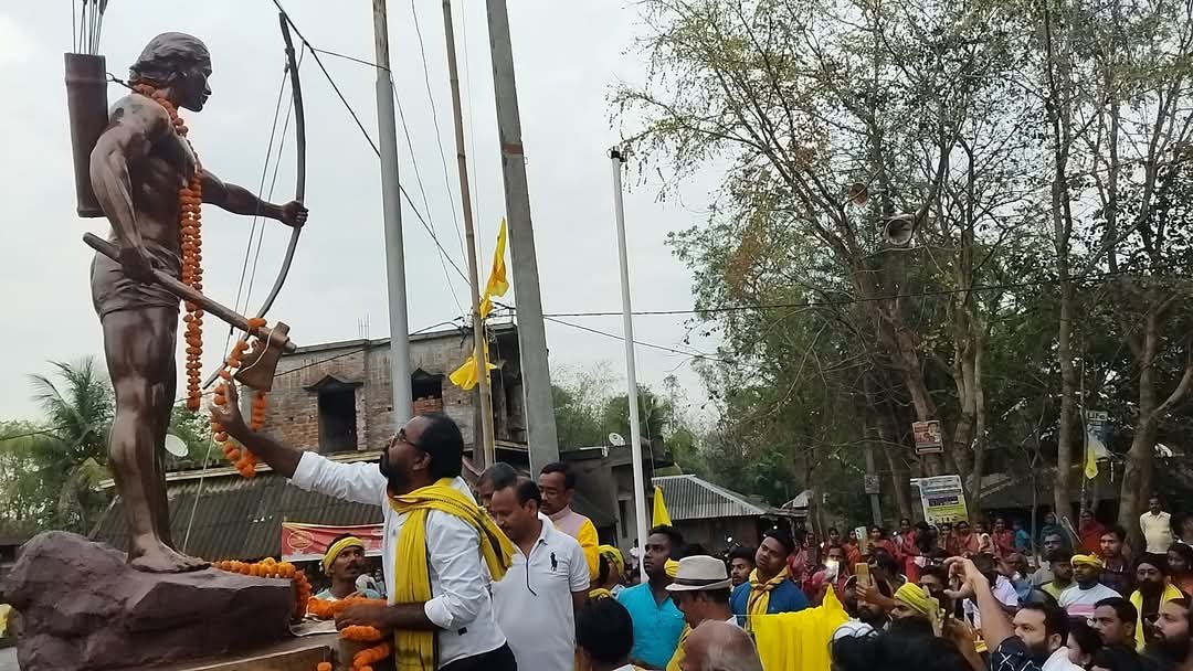 নতুন প্রজন্মের মধ্যে কতজন চুয়াড় বিদ্রোহের কথা জানেন, কতজনের জানা আছে ইষ্ট ইন্ডিয়া কোম্পানীর বিরুদ্ধে জল জঙ্গল জমিনের রক্ষার জন্য লড়াই করে পরাধীন ভারতে প্রথম শহীদ হয়েছিলেন রঘুনাথ মাহাতো। আদিবাসী, কুড়মি পিছিয়ে পড়া জনজাতি যে দেশের স্বাধীনতা আন্দোলনে ঝাঁপিয়ে পড়তে পারে। সেই পথ দেখিয়েছিলেন শহীদ রঘুনাথ মাহাতো। মহান এই বিপ্লবী শহীদের জন্মদিনে তাঁর মূর্তির উন্মোচন করা হল পশ্চিম মেদনীপুরের শালবনীর ভীমপুরের কয়মা কলেজ মোড়ে। অনুষ্ঠানের উদ্যোক্তা রঘুনাথ মাহাতো স্মৃতিরক্ষা কমিটি( আবগা কুড়মি সেনা)।