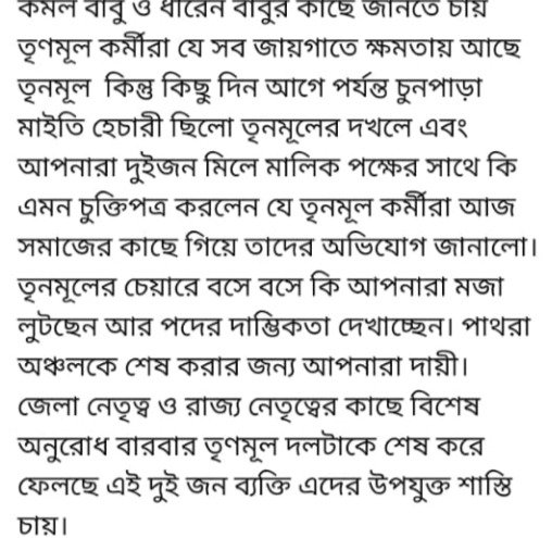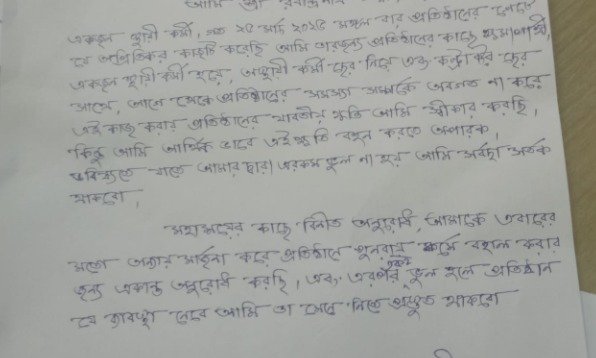 স্বাভাবিকভাবেই তৃণমূলের অন্দরে সাধারণ তৃণমূল কর্মীদের নির্দিষ্ট দুজন নেতার বিরুদ্ধে সরাসরি অভিযোগ করছেন। এবং গুরুতর অভিযোগ তুলছেন। তার মাঝে এভাবে মুচলেকা নেওয়া হয়েছে এক স্থায়ী কর্মীর কাছ থেকে। এর মধ্যে গভীর ষড়যন্ত্রের আশঙ্কা করছেন আন্দোলনকারীরা।