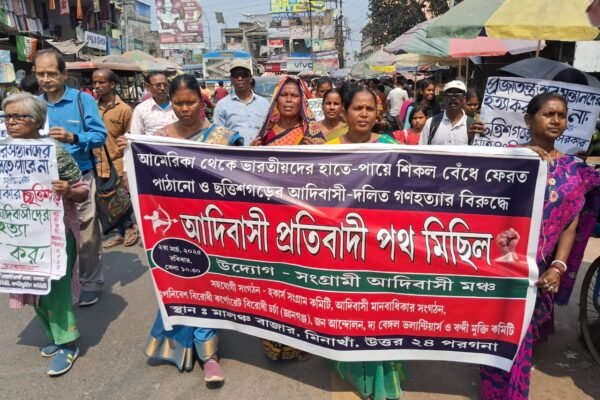ট্রাম্প সরকার শিকল পরিয়ে ভারতীয়দের ফেরত পাঠানোর পর ও নীরব মোদি ও ছত্তিশগড়ে আদিবাসী হত্যার প্রতিবাদে পথে আদিবাসী সমাজ