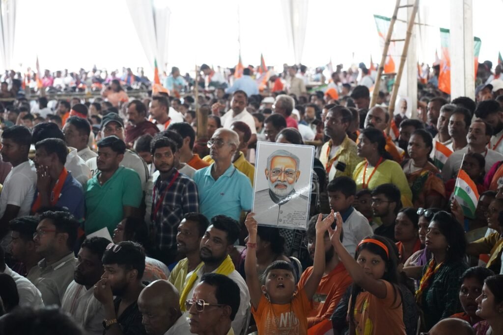 বাংলার মানুষের আবেগে শান দিতে চায়।’’’জয় মা কালী, জয় মা দুর্গা’ বলে ভাষণ শুরু করলেন প্রধানমন্ত্রী। বক্তব্যের প্রথম থেকে শেষ পর্যন্ত তাঁর মুখে শোনা গেল না জয় শ্রীরামের জয়ধ্বনি। বাংলার মানুষের সামনে বিজেপি ক্ষমতায় এলে শিল্প শিক্ষায় আমূল পরিবর্তন আইনের শাসন প্রতিষ্ঠার কথা জোর দিয়ে জানালেন।