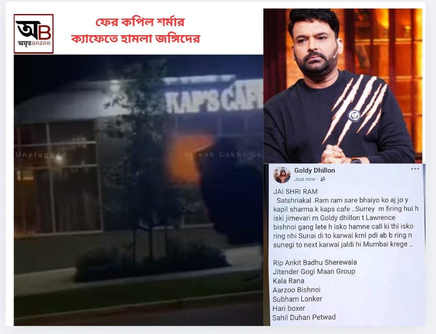 ৯ জুলাইয়ের পর ৭ আগস্ট। এক মাসের ব্যবধানে দ্বিতীয় বার গুলি চলল কপিল শর্মার ক্যানাডার ‘ক্যাপস ক্যাফেতে’। এই হামলার দায়ী স্বীকার করেছে লরেন্স বিষ্ণোই গোল্ডি ব্রার গ্যাং। হামলার পর নিজেদের দায় স্বীকার করে গ্যাংস্টার গোল্ডি ধীলো সামাজিক মাধ্যমে পোস্ট করেছেন। তাতে লেখা হয়েছে”জয় শ্রী রাম, সৎ শ্রী অকাল, রাম রাম ভাইরা। সারেতে কপিল শর্মার ক্যাপস ক্যাফেতে আজ যে গুলি চলেছে তার দায় নিচ্ছি আমি। গোল্ডি ধিলো এবং লরেন্স বিষ্ণই গ্যাং। আমরা ওকে ফোন করেছিলাম। কিন্তু ও ফোনে সাড়া দেয়নি। তাই আমারা ব্যবস্থা নিয়েছি। যদি ও এখনো সাড়া না দেয় তাহলে আমরা শীঘ্রই মুম্বইয়ে পরবর্তী পদক্ষেপ করব।
