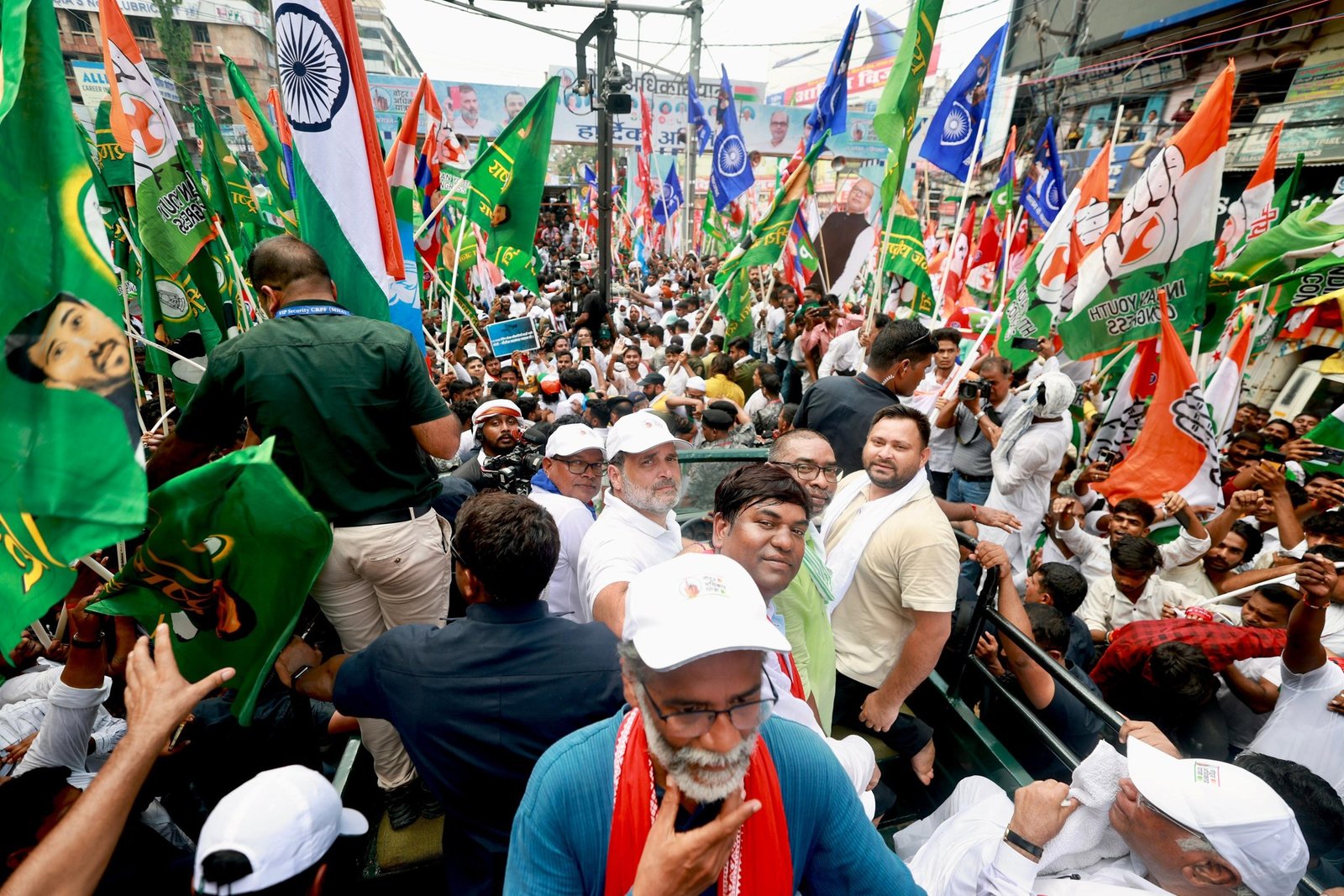 বিহার জুড়ে বিরোধী মহাজোটবন্ধনের ‘ভোটের অধিকার যাত্রা কর্মসূচী সোমবার সমাপ্ত হল। এই উপলক্ষে পাটনায় মহাসমাবেশে সাধারণ মানুষের ঢল নেমেছিল। কংগ্রেস এবং রাষ্ট্রীয় জনতা দলের – ডাকে সমাবেশ থেকে সাধারণ জনগণের গলায় শোনা যায় ‘ভোট চোর, গদ্দি ছোড়’ স্লোগান। সমাবশে বক্তব্য় রাখতে গিয়ে লোকসভার বিরোধী দলনেতা রাহুল গান্ধি বলেন, “আমরা তাদের ( বিজেপিকে) সংবিধান হত্যা করতে দেব না. সেই কারণেই আমরা যাত্রা শুর করেছিলাম এবং আমরা বিপুল সাড়া পেয়েছি। বিপুল সংখ্যক মানুষ পথে নেমে এসে ‘ভোট চোর, গদ্দি ছোড়’ স্লোগান তুলেছিল,”।